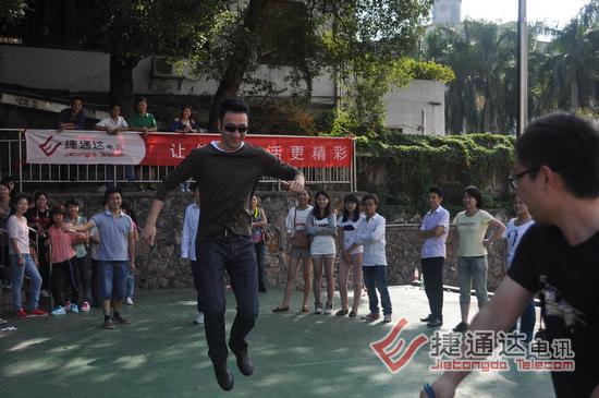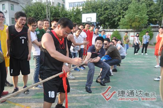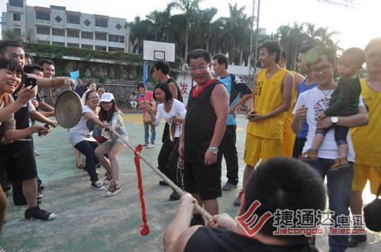 168澳洲幸运五官方开奖网站电讯副总经理马英亲临现场,与员工们一起开展了跳长绳和拔河比赛。在拔河环节,马总与信息中心代总、运营中心郭总、人力资源杨总,以及营销中心张总,五人组成的老总队,与自发组队的15名女员工,现场PK,最终,女员工们团结一心、努力拼搏,顽胜老总队。