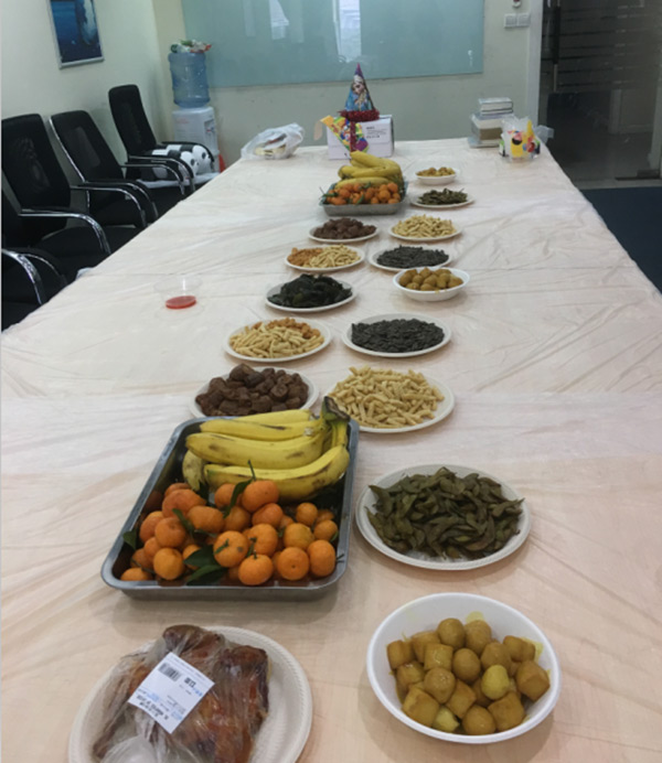 下午茶活动是15:15开始,为了保证活动顺利举行,人力资源部的同事14:00就开始为下午茶做准备了。我先上图,你们准备好了吗?今天,我们相聚在这里,各位请敞开你的心扉,释放你的激情;张开胃口,吃好喝好!