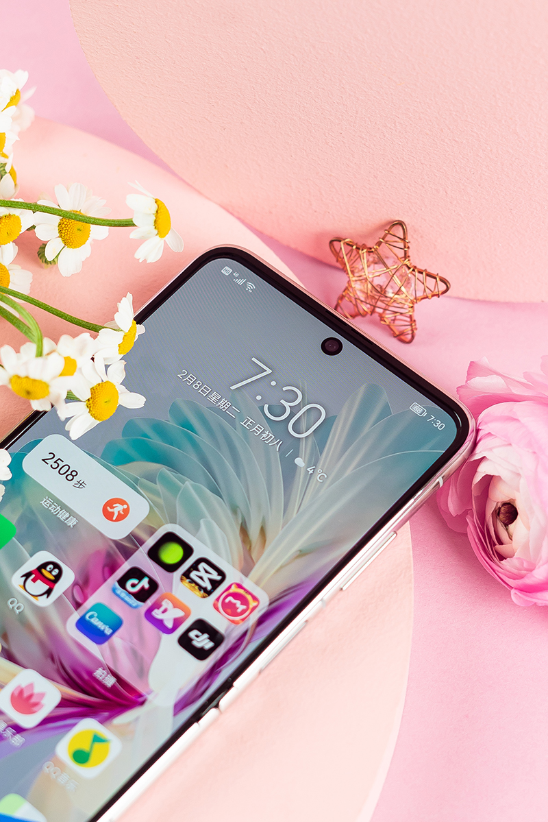 这款晶钻白配色,源于设计师把钻石光影的灵感融入到晶钻白版的手机上,通过双面立体微雕工艺在玻璃上实现极致雕刻的纹理效果,手机背面在光线照射下,呈现光影交织的艺术魅力,光影之间璀璨万象。