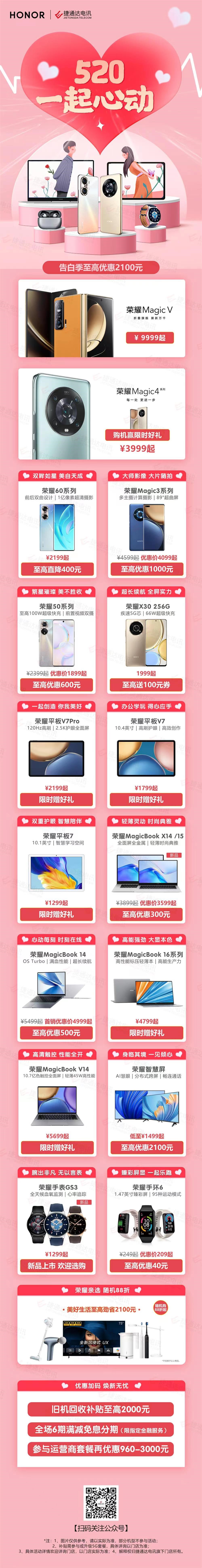 荣耀520一起心动,告白季至高优惠2100元